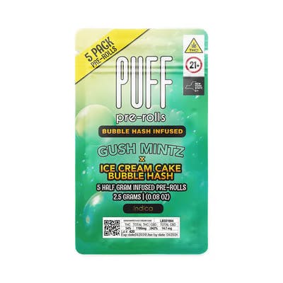 PUFF | Gush Mintz x Ice Cream Cake | .5g Bubble Hash-Infused Preroll 5pk